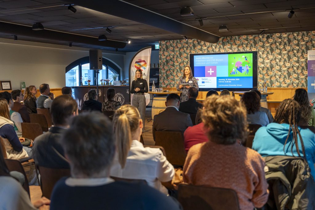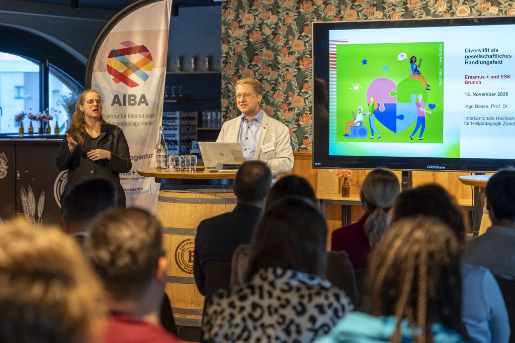 Am Samstag, 15. November 2025, fand im Brauhaus Schaan der Erasmus+- und ESK-Brunch zum Thema «Inklusion und Vielfalt» statt. Rund 50 Gäste aus Bildung, Jugendarbeit, Politik und Zivilgesellschaft trafen sich, um gemeinsam über Wege zu mehr Teilhabe und Chancengleichheit zu diskutieren. Die Veranstaltung bot eine Plattform für Austausch, Inspiration und Vernetzung mit spannenden Referaten und einer lebendigen Talk-Runde.