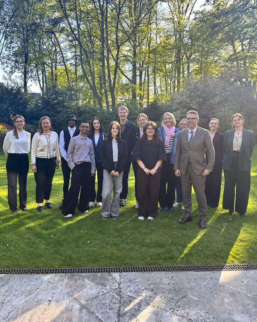 Am Vorabend des Events wurden wir von der Liechtensteinischen Botschaft in Brüssel zu einem Empfang eingeladen. In persönlicher Runde erhielten die Jugendlichen von Botschafter Schafhauser direkte Einblicke in seinen Arbeitsalltag und in die vielfältigen Aufgaben der Liechtensteinischen Botschaft vor Ort. Abgerundet wurde der Abend durch ein gemeinsames Abendessen in der Residenz des liechtensteinischen Botschafters – eine besondere Gelegenheit für Austausch, Fragen und neue Perspektiven.