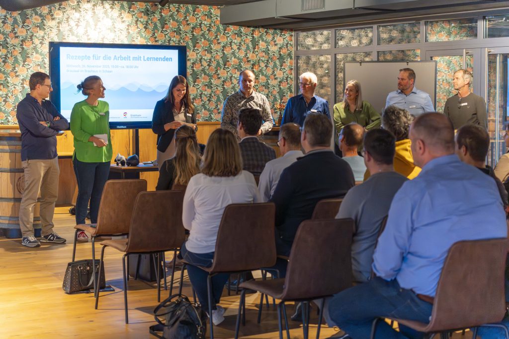 Die Anforderungen an Lernende verändern sich kontinuierlich. Eine dynamische Arbeitswelt, höhere Erwartungen an Selbstständigkeit und der Bedarf an mentaler Stärke prägen die Berufsbildung. Wie Fachpersonen Lernende in diesem Umfeld optimal begleiten können, stand im Zentrum der Veranstaltung «Rezepte für die Arbeit mit Lernenden», die am 26. November 2025 durch das von der AIBA koordinierte VET-Team Liechtenstein im Brauhaus Schaan organisiert wurde.