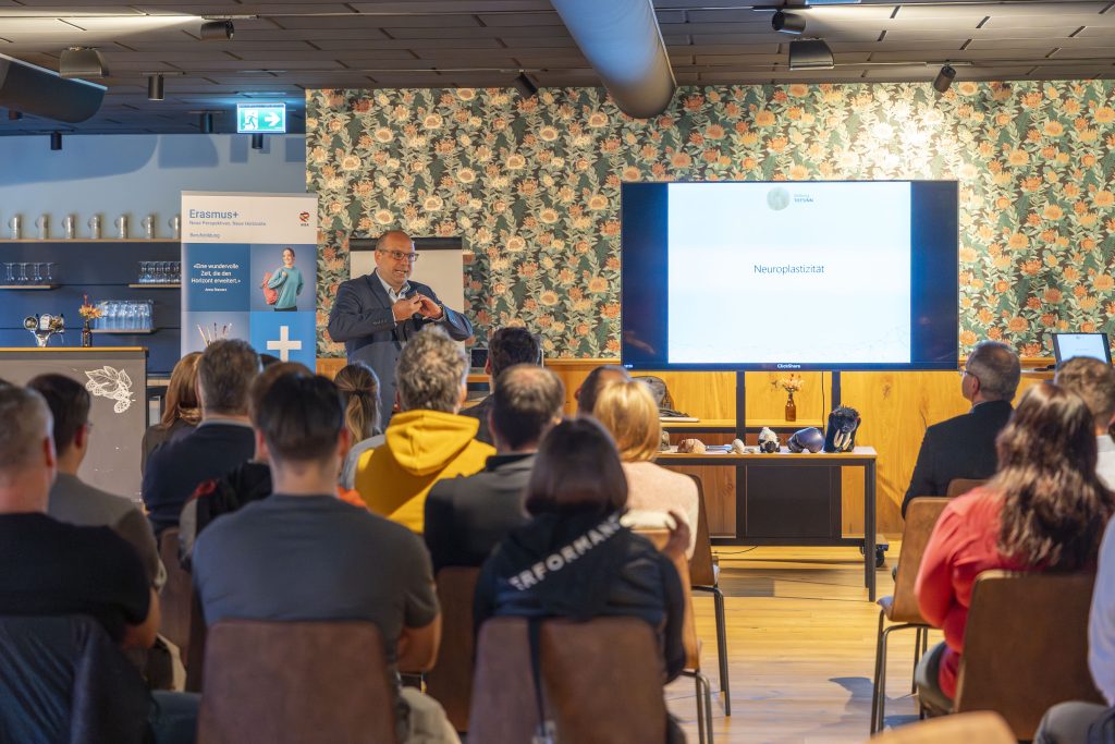 Den Auftakt machte ein Inputreferat von Dr. med. Marc Risch, Facharzt für Psychiatrie und Psychotherapie. Er betonte die Bedeutung ungeteilter Aufmerksamkeit, des aktiven Interesses an Bedürfnissen und Belastungsfaktoren sowie klarer Regeln und Orientierung. Zudem hob er hervor, dass Fehler als Lernchancen verstanden werden sollten und dass sowohl Langeweile als auch ausserbetriebliche Aktivitäten wichtig für die Entwicklung und Resilienz junger Menschen sind.
